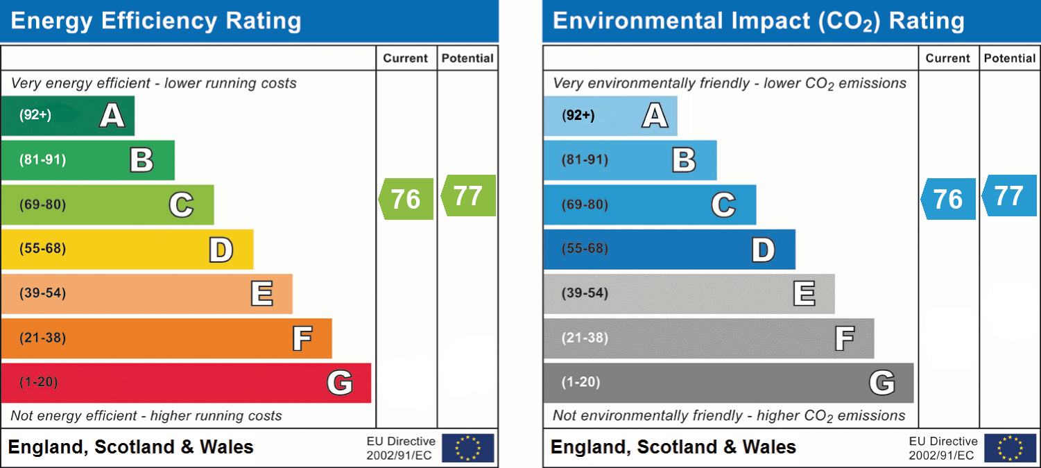 There is a well presented, carpeted communal entrance hall with stairs leading to the second floor. Once entering the property the spacious hallway features a large storage cupboard plus a utilty cupboard, that houses the Megaflow system, electric boiler and is plumbed for a washing machine. The bright, spacious and airy living/dining room and fitted kitchen is situated to the left of the hallway and has dual aspect windows, which enjoys fabulous views across the Village from an elevated position. The kitchen is fitted with a range of modern, contemporary fitted units at base and eye level, electric oven, hob and extractor hood over, plus integrated dishwasher and fridge freezer. Both bedrooms are double in size and the master bedroom has an ensuite shower room with under floor heating. The spacious modern bathroom completes the impressive accommodation on offer and also comprises of under floor heating. Outside there is an allocated and lockable parking space.
